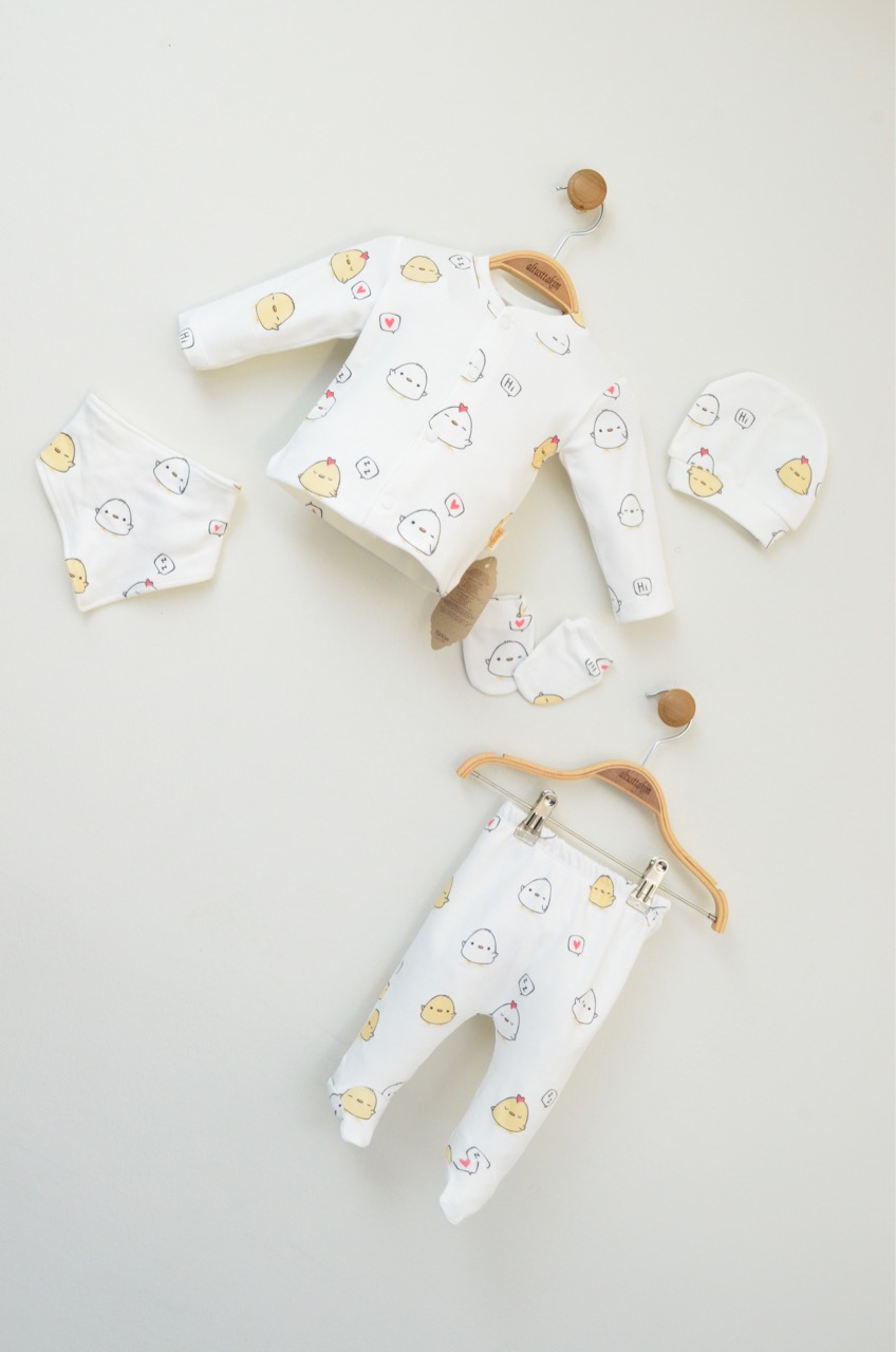 5’li Hastane Çıkış Seti Civciv Desen (0-3 ay)